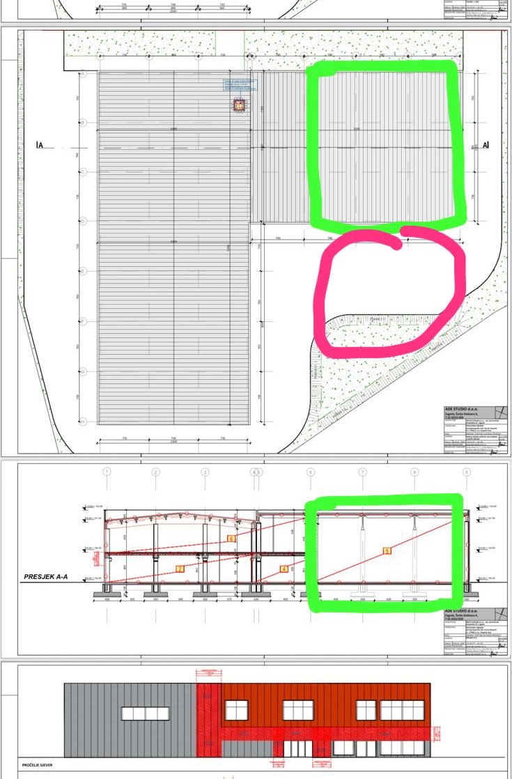 A warehouse currently under construction, with move-in planned for spring 2026. The plot covers approximately 4,600 m² and features two separate entrances/exits from Gornjostupnička Street.