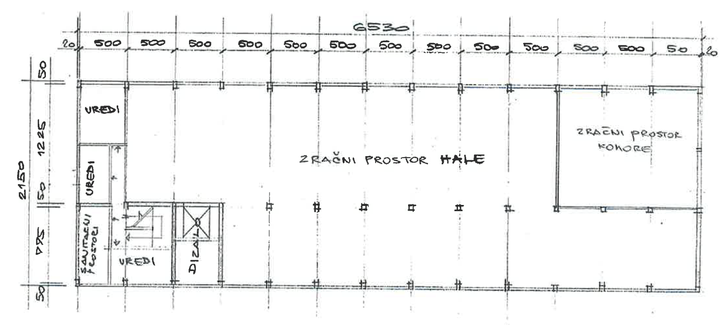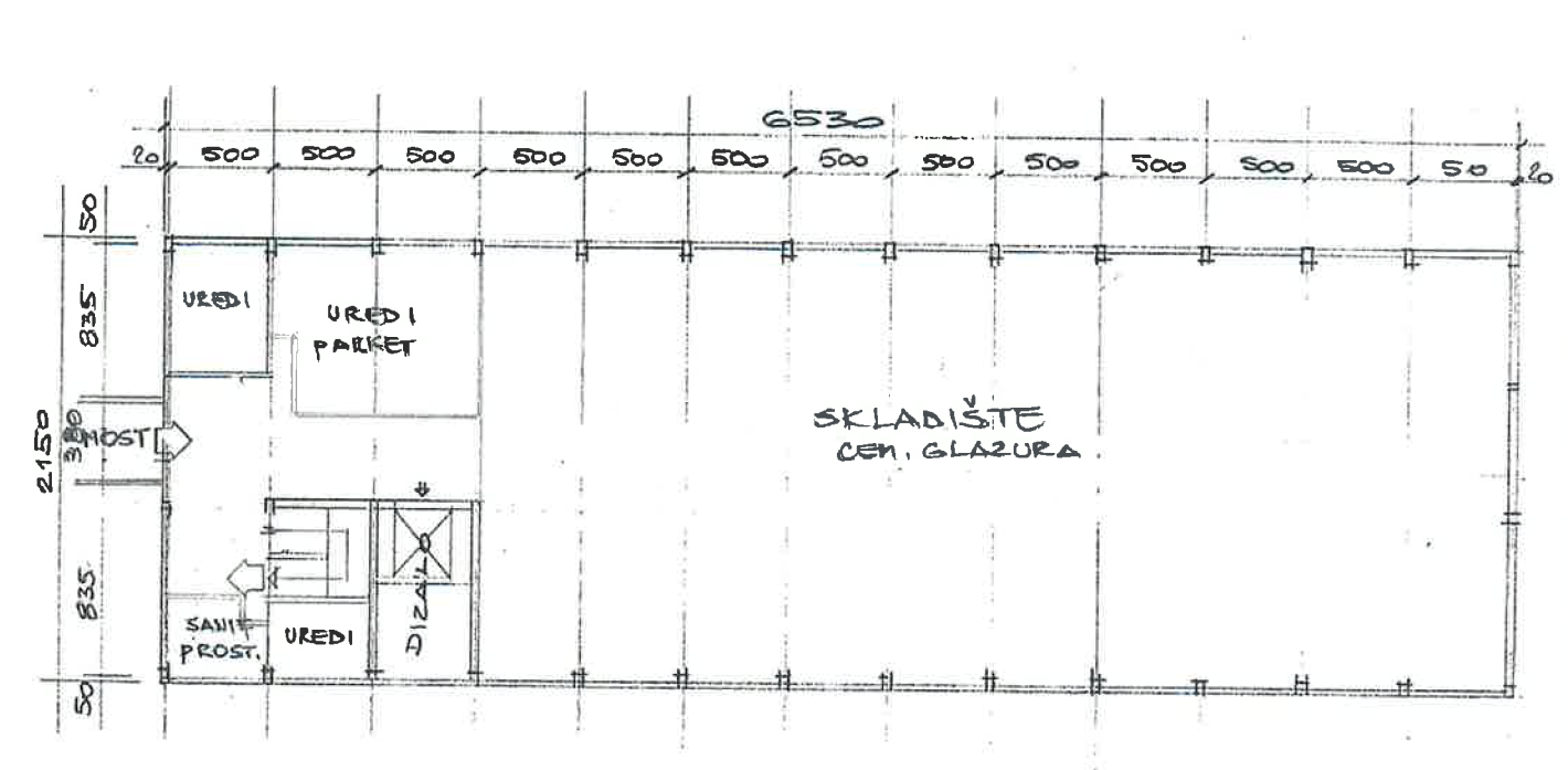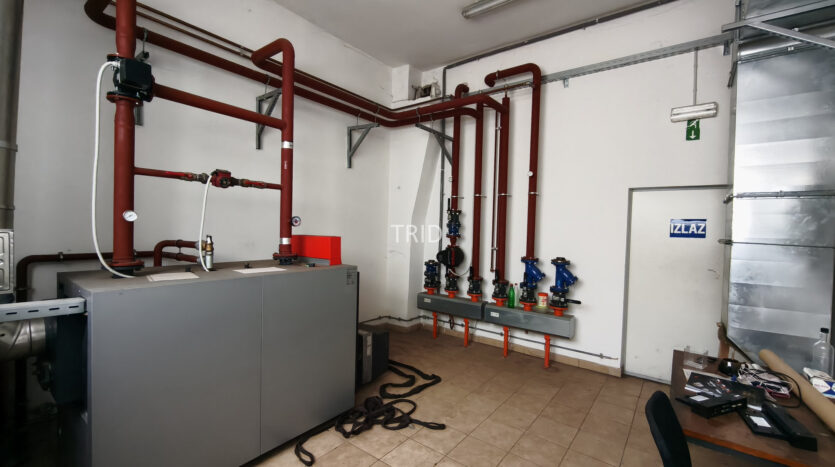 Objekt se sastoji od tri etaže: prizemlja, polukata i kata, ukupne neto površine cca 2.800 m². Prizemlje površine cca 1.320 m² pogodno je za proizvodnju i skladištenje te je opremljeno s tri mostne dizalice (2 × 5.000 kg i 1 × 3.000 kg). Etaže su povezane teretnim dizalom nosivosti 3.000 kg i armiranobetonskim stubištem.
